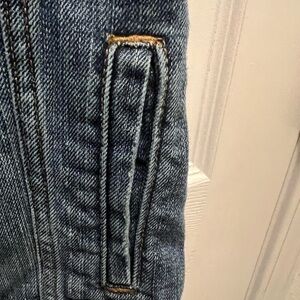 The vest has a classic denim look with a button-up front and two chest pockets. It's a great piece for adding a touch of vintage flair to any outfit.