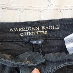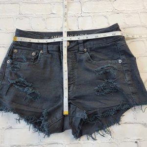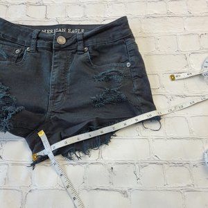 Excellent condition American Eagle Woman’s Stretch Black Distressed Hi Rise Festival jean shorts size 2