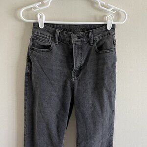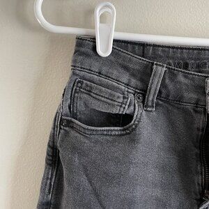 American Eagle Women 0 Gray Charcoal Wash Denim High Rise Stretch Mom Jean.