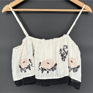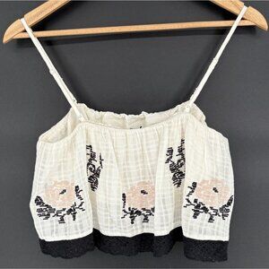 American Eagle Women Floral Embroidered Cami Crop Top M Off White