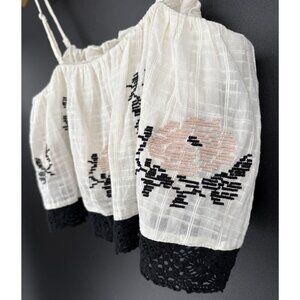 American Eagle Women Floral Embroidered Cami Crop Top M Off White Boho Festival