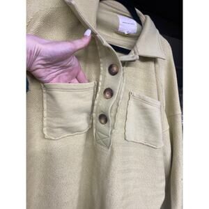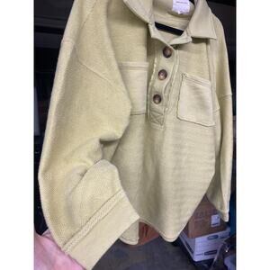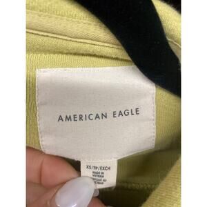 American Eagle Women Oversized Chartreuse Yellow Pocket Camping Sweatshirt XS TP
