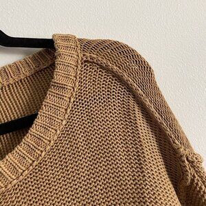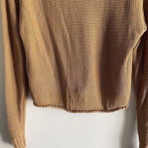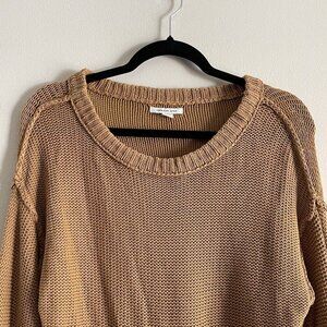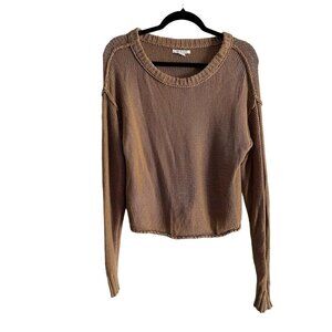 American Eagle Women SZ S Brown Long Sleeve Loose Knit Cropped Pullover Sweater