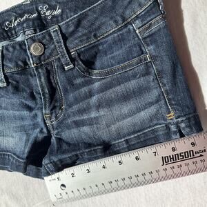 American Eagle Women Shorts 2 Blue Denim Stretch Button 2" Inseam