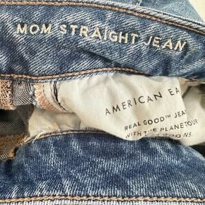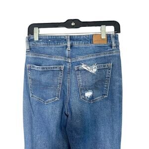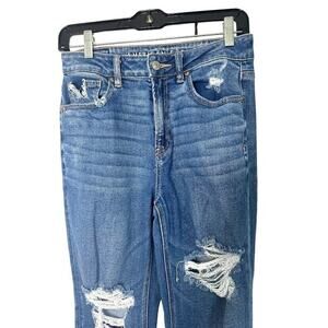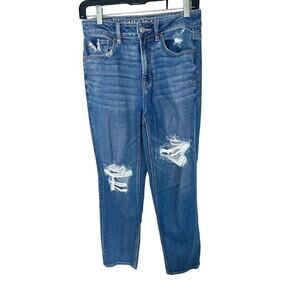 American Eagle Women Size 4 Mom Straight Jean Blue Denim Stretch Distressed
