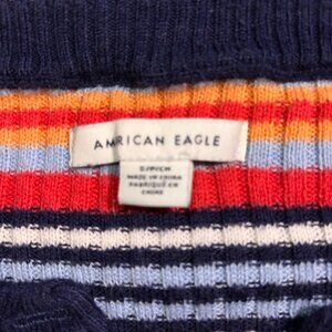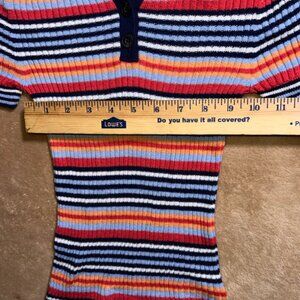 American Eagle Women Small Stripe Short Sleeve 4 Button Knitted Sweater Top (R)