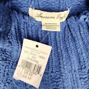 American Eagle Women Sweaters, NEW Blue Mock Neck Crop Knit Sweater, Sz XS