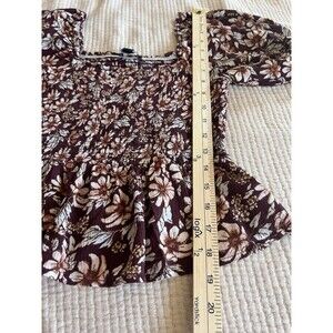 American Eagle Women Top XS Brown Floral Cropped Boho Smocked Peplum Peasant
