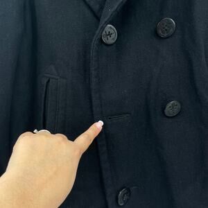 American Eagle Women Wool Blend Five Button Black Pea Coat