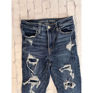 American Eagle Women's 2 Next Level Stretch Skinny Jeans Dark Wash Distressed