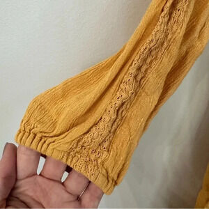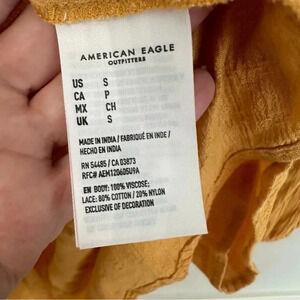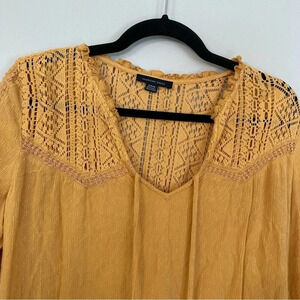American Eagle Women’s 3/4 Sleeve Mustard Yellow Flowy Lace Top Size S GUC