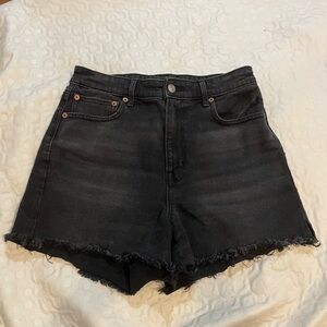 American Eagle Women's Black Denim Shorts Highest Rise 90’s Boyfriend Cut Off 4