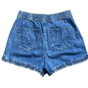 American Eagle Women’s Blue Denim Mom Shorts Super High Rise Size 4 Ruffle