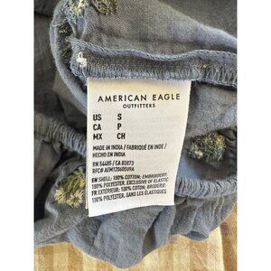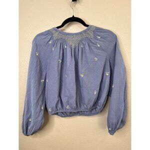 American Eagle Womens Blue Embroidered Crop Blouse Size S Bohemian Cotton