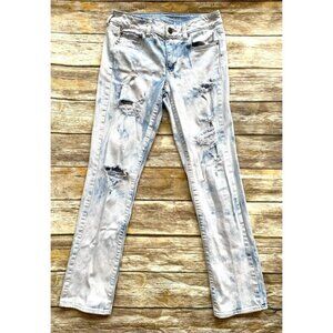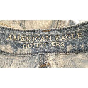 American Eagle Womens Blue Jean Tie Dye Distressed Straight Stretch Jeans Size 6