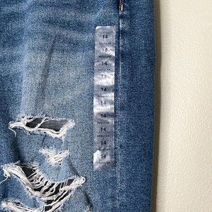 American Eagle Womens Blue Ripped Mom Jeans SIze 14 Stretch Distressed Denim