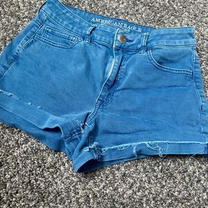 American Eagle Outfitters womens blue super super stretch high rise shortie cutoff shorts. Size 6. In excellent pre-owned condition