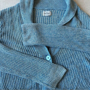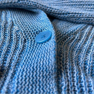 American Eagle Women's Blue and White Knit Cropped Front Button Cardigan - M.