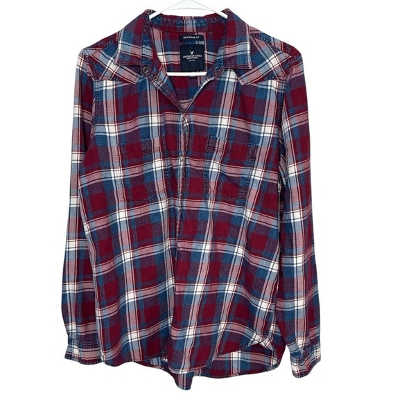 American Eagle Women's Boyfriend Fit Plaid Button Front Top Size Large