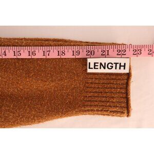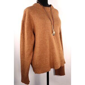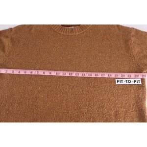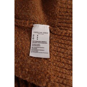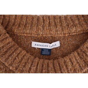 This American Eagle sweater, crafted from a soft blend of materials, offers a relaxed fit for casual wear. It features a ribbed neckline, cuffs, and hem, providing a classic look suitable for cooler weather. The rich brown hue adds warmth to any wardrobe, making it a versatile addition.
