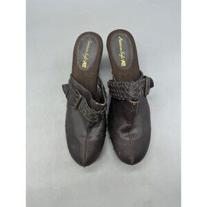 American Eagle Womens Brown Leather Chunk heels Clogs Size 12 READ