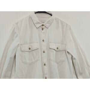 American Eagle Women’s Button Up Shacket Oversized Cream White Denim Size Small