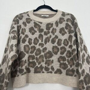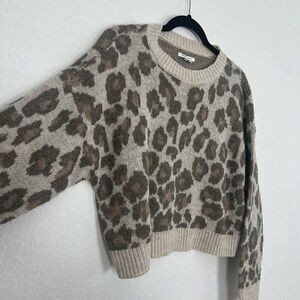 American Eagle Womens Cheetah Leopard Print Wool Blend Knit Crewneck Sweater XS