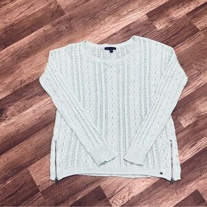 American Eagle Women’s Cozy Cable Knit Sweater Zipper Size Medium In Mint Green