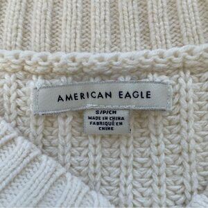 American Eagle Women's Cream Blue Striped Oversized Wide Knitted Sweater Size SMALL