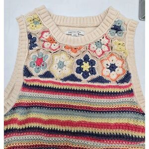 American Eagle Womens Crochet Floral Striped Sleeveless Sweater Vest SP/CH