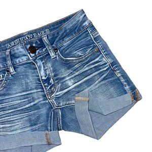 American Eagle Womens Cuffed Shorts 0 Midi Mid Rise Light Wash Embroidered Logo