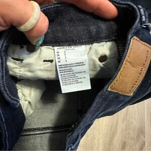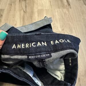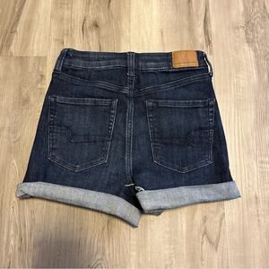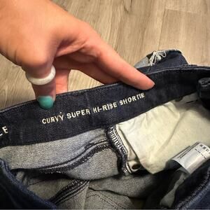 American Eagle Women's Dark Wash Curvy Super High Rise Shortie Shorts Size 2