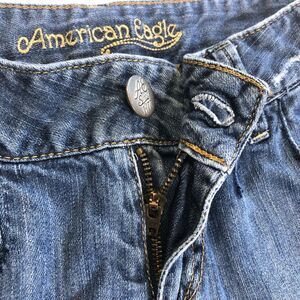 These American Eagle women's distressed jean shorts offer a casual look with light distressing and practical slash pockets, perfect for everyday wear.