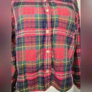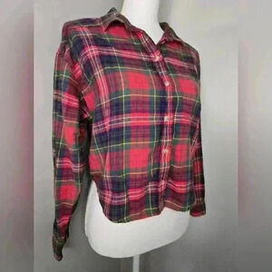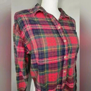 American Eagle Womens Flannel Button-Down With Patchwork Elbow Size XS In Excellent Condition
