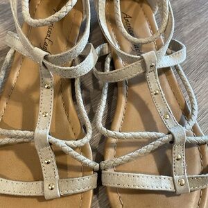 American Eagle Tan Faux Suede Braided Strappy Gladiator Sandals