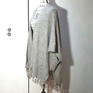 American Eagle- Womens Gray Cable Knit open Cardigan W/Fringe Neutral Size OS