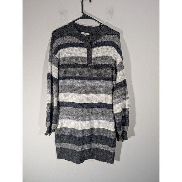 American Eagle Womens Gray Striped Long Sleeve Sweater Dress Sz S Academia