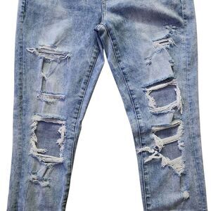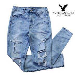 American Eagle Outfitters Super Hi-Rise distressed, Regular Fit, High Stretch.