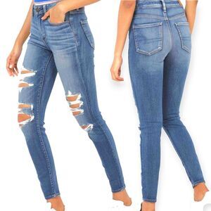 American Eagle Women's Hi-Rise Jeans Denim Blue Skinny Distressed Size 6 Small