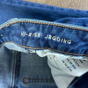 American Eagle Women’s High Rise Distressed Jegging, size 00. In good used condition. See pictures for measurements and fabric content.