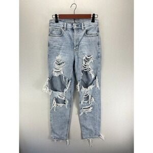 American Eagle Womens Jean 2 Reg Blowout Blue Distressed Mom Jean