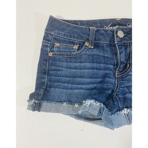 American Eagle Womens Jean Shorts Sz 2 Stretch Denim Cuffed Booty Mini Raw Hem