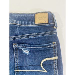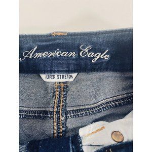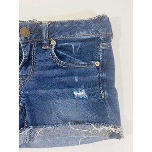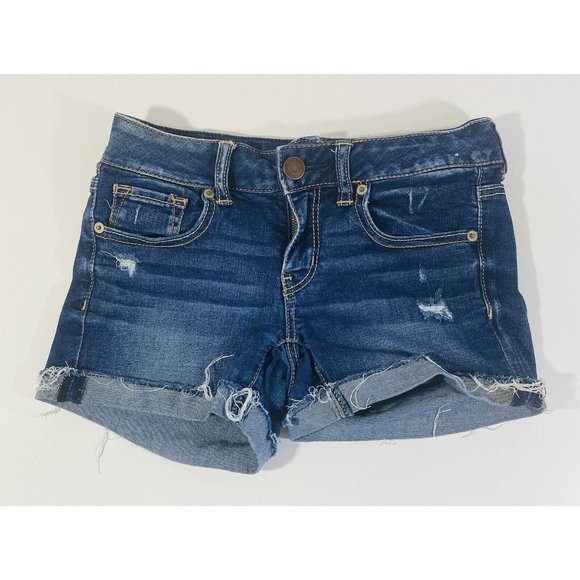 American Eagle Womens Jean Shorts Sz 2 Super Stretch Denim Cuffed Booty Mini Raw Hem