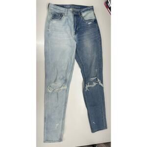 American Eagle Womens Jeans Size 00 Mom Jean Two Tone Distressed Denim