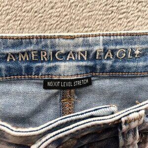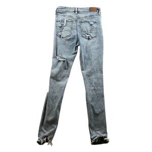 These American Eagle jeans offer a stylish, distressed look with superior comfort. The light wash and stretchy fabric create a flattering, modern silhouette.