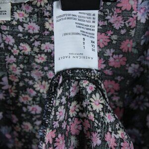 American Eagle, Women's L. V-Neck Blouse. Black Background with flowers
