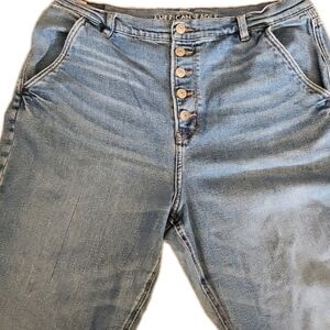 American Eagle Womens Light Wash Button Front High Waist Mom Jean 16