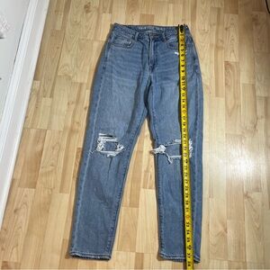 American Eagle Womens Light Wash Distressed Mom Jeans High Rise Size 2