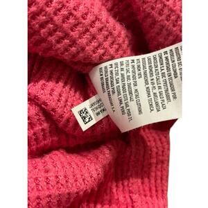 American Eagle Women's Long Sleeve Waffle Knit Top Bright Pink Oversized Small