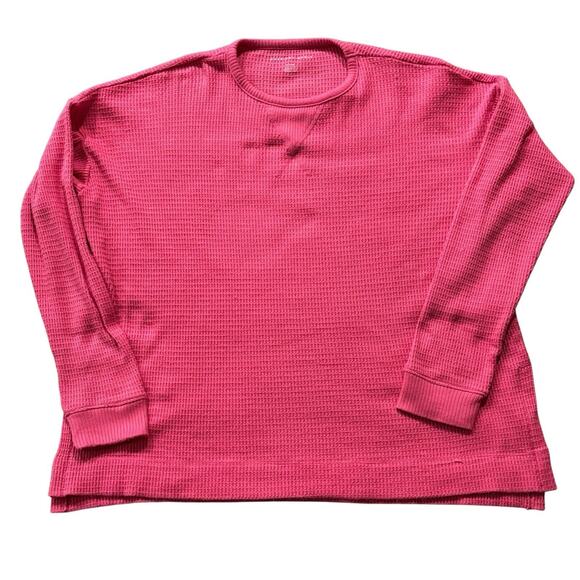 American Eagle Women's Long Sleeve Waffle Knit Top Bright Pink Oversized Small